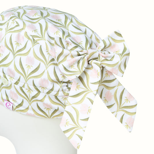 Our scrub cap features a feminine pattern, a flattering fit tailored, and a detachable bow for a personalized touch.
